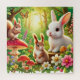 Colourful illustration of woodland animals including rabbits and squirrels in a vibrant forest setting with blooming flowers and red mushrooms, capturing the magic of nature, peace, and enchantment.