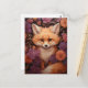 Whimsical Fox on a Bed of Fall Flowers Postcard
