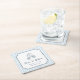 Whimsical Frame Retro Blue Stripes Wedding Square Paper Coaster