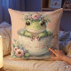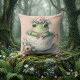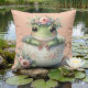 Whimsical Frog in Floral Teacup Cushion