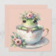Whimsical Frog in Floral Teacup Flat Greeting Card