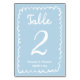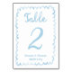 Whimsical Fun Hand Written Drawn Light Blue White Table Number
