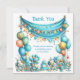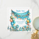 This charming thank-you card is perfect for expressing gratitude with a touch of whimsy and joy. Its vibrant teal colour and playful design make it ideal for birthdays, especially for children. It's a delightful way to say thank you in a memorable and heartwarming style.