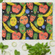 Whimsical Funny Fruit Salad Pattern Black Tea Towel