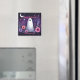 This is a festive Halloween-themed design featuring a friendly ghost standing in a field of purple and pink flowers. The background is a starry night sky with a crescent moon, adding a touch of magic to the design. The words "Happy Halloween" are prominently displayed in pink lettering, while a personalised message at the bottom. This decorative item is a perfect addition to any Halloween party or gathering, adding a whimsical and cheerful touch to the festivities.