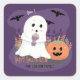 Whimsical purple Halloween stickers featuring an adorable little ghost sipping a cold drink . Personalise them with your own text and family's name .