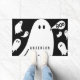 This fun door mat features a large whimsical ghost with your custom name on the lower part of the ghost. The ghost is surrounded by several smaller ghosts, and the word "Boo" in a speech bubble. Click "Personalise this Template" to easily change or remove the featured sample name.