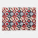 Whimsical Gingham Christmas Quilt design in blues and reds and off white - Cute Christmas trees, ornaments and snowflakes decorated with cute buttons and with gingham and polka dots as the backgrounds for the squares. A favourite Christmas design for farm folks and country cabin families. NO real buttons or quilt fabric is on this product, it is artistically created to look like a quilt.