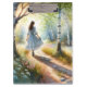Whimsical Girl Dancing Through Birch Forest Clipboard