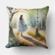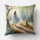 Whimsical Girl Dancing Through Birch Forest Cushion