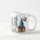 Christmas mug featuring a whimsical illustration of cute girls and Christmas trees with gifts. Lovely for sisters or best girlfriends.
