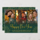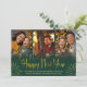 Whimsical Green and Gold Happy New Year Photo Card. This elegant holiday card features a beautiful modern calligraphic "Happy New Year" and a sleek three-photo collage. A festive yet modern design template for sharing your favourite memories.