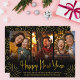 Whimsical Black and Gold Happy New Year Photo Card. This elegant holiday card features a beautiful modern calligraphic "Happy New Year" and a sleek three-photo collage. A festive yet modern design template for sharing your favourite memories.