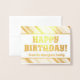 This whimsical and playful gold foil birthday greeting card design features the message "HAPPY BIRTHDAY!" on the front, along with a customised message on the inside. It could be used to wish a happy birthday to somebody.