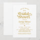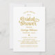 Bright white and rich gold make a striking combination in this bold, celebratory bridal shower invitation featuring oversized whimsical heart script typography. The clean white background lets the gold lettering take centre stage for a festive, eye-catching look that feels both fun and elegant. All text is fully customisable with the honoree's name and event details.