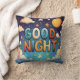 The pillow has a cute whimsical design on one side featuring a beautiful sunrise and the words "Good Morning", and on the backside a dark evening sky with stars and moon, with the words, "Good Night". Looks great anywhere, especially the kids rooms.