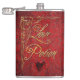 The flask itself is fine. It’s a cheap flask, obviously bought in bulk, however am prepared to overlook that. Given that it is a personalized item, I would have liked to have seen gift boxing instead of the generic packaging. Terrible printing, and/or quality. It’s a cheap, tacky vinyl. It is not cut straight and is also applied in a way that it is overhanging the bottom, causing the glue to catch on items and it will eventually roll and tear, damaging the wrap.
