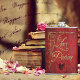 A whimsical and romantic goth design to turn an ordinary bottle into a Valentine's Love Potion featuring a filigree red heart and rich gold letters.