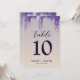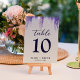 Add a touch of whimsical elegance to your wedding tables with these personalised table numbers. The soft purple gradient background and delicate floral design create a romantic and stylish look.