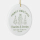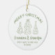 Featuring a whimsical festive design it’s a timeless memento that captures one of life’s most precious moments. Each elegant round ceramic ornament includes a gold hanging string and is available in six festive colors — Black, Green, Blue, Red, Pink, and Sage Green.