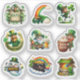 A lively mix of cheerful leprechauns, rainbows, shamrocks, and pots of gold creates a playful St. Patrick’s Day scene. The bright cartoon style brings a festive, storybook charm. Inspired by classic Irish folklore, this design celebrates luck, joy, and colorful holiday whimsy.