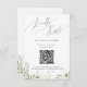 Step into a world of enchantment with our whimsical greenery and gold QR code RSVP card, perfect for your botanical spring boho wedding. Adorned with sage green eucalyptus and gold accents, this RSVP exudes elegance and modern whimsy. Imagine strolling through a magical summer garden, surrounded by the soothing sounds of nature. The design effortlessly captures the rustic charm of autumn with its light green hues, evoking the beauty of the changing season. With a touch of minimalist sophistication and classic bohemian flair, the shimmering faux gold foil details add a touch of glamour and romance. Complete with a graceful fairytale feel, this RSVP exudes class and showcases the natural splendour of fall. Please feel free to contact us with any questions about the design, and let us help you make the wedding of your dreams.