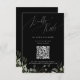 Whimsical Greenery Black and Gold QR Code RSVP Card
