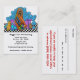 This adorable design features a Labradoodle (Labrador-Poodle mix) covered by a colourful towel and sitting in front of a claw foot bathtub filled with frothy bubbles. A brush and bottles of shampoo and conditioner await her. There is an orange cat playfully reaching for one of the bubbles above him. A black and white chequerboard floor completes the look of this completely customisable business and appointment card. Your pet business information on the front and your customer's appointment information on the back!