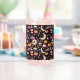 A magical Halloween night unfolds in this whimsical pattern, filled with glowing crescent moons, playful bats, and radiant stars set against a deep black sky. Bright orange pumpkins, swirling clouds in shades of purple and grey, and delicate spiderwebs weave together a lively yet enchanting scene. The design blends spooky charm with a dreamy storybook feel, perfect for evoking festive autumn nights and imaginative seasonal whimsy. AI generated artwork.