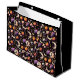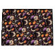 A magical Halloween night unfolds in this whimsical pattern, filled with glowing crescent moons, playful bats, and radiant stars set against a deep black sky. Bright orange pumpkins, swirling clouds in shades of purple and grey, and delicate spiderwebs weave together a lively yet enchanting scene. The design blends spooky charm with a dreamy storybook feel, perfect for evoking festive autumn nights and imaginative seasonal whimsy. AI generated artwork.