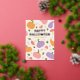 Adorable Whimsical Pumpkins and Mushrooms Greeting Card design with pumpkins, mushrooms, fall foliage and sparkles, inspired by the spooky season. You can personalise the outside of the card with your family name and year, and the inside with your own unique message. The cute design in pastel pink, orange, lavender and green is perfect to add a touch of magic to your Halloween celebration. All artwork is original and designed by Creative Wolf Design.