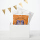 Fun favour bags for Halloween parties features whimsical watercolor purple witch boots, with customisable "Trick or treat" text on orange background
