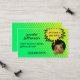 Cute mummy calling card done in a bright green and gradient yellow dots. Fun graphics of a hamster sticking it's head out from a black hole has a yellow cartoon yell out, with custom text on it. Black text on the front and the back, is ready to personalise to suit your needs. Great for arranging play dates with other moms.