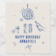 Navy blue whimsical hand drawn editable age birthday drinks cocktail disco ball bow coquette party decor favour wine label.