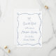 Whimsical Hand Drawn Coquette Bow Dusty Blue Wedding Save the Date with a wavy ribbon frame and handwriting style font. Add extra details to the reverse.