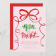 Trendy whimsical Merry & Bright holiday card with a hand drawn bow frame. Perfect for sending warm wishes to loved ones during the holiday season!