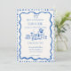 This trendy hand drawn style illustrated wedding invitation features a scribble bow and dinner table elements. The whimsical and quirky design includes handwritten font and celebration doodles. Blue colour for a classic yet modern wedding stationary collection.
