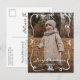 Send festive greetings with this Whimsical Hand-Drawn Bow Frame Christmas Photo Postcard. The design features your full-bleed photo accented by a playful white ribbon and bow frame, with “Merry Christmas” in whimsical handwritten script and your family name displayed below in serif lettering. The reverse side provides space for your return address and personalised holiday message, making this a convenient and charming postcard option for sharing Christmas cheer with loved ones.