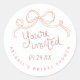 Whimsical Hand Drawn Bow Custom Bridal Shower Envelope Seals. Shown in soft neutral colours of brown, blush, and pink, but all colours are editable by you. "You're invited" in a quirky and fun script. Personalise the template with your event date and title. © Kimbellished, LLC