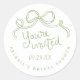 Whimsical Hand Drawn Bow Custom Bridal Shower Envelope Seals. Shown in sage green and white, but all colours are editable by you. "You're invited" in a quirky and fun script. Personalise the template with your event date and title. © Kimbellished, LLC
