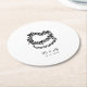 Celebrate your special day with a unique touch by adding these whimsical hand-drawn cake wedding round paper coasters to your reception decor. Featuring a charming illustration of a wedding cake, these coasters add a playful yet elegant element to your wedding tablescape. Perfect for couples looking for creative and fun wedding accessories, they bring a personalised touch to each guest’s experience.