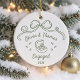 Whimsical Hand Drawn Christmas Engaged Ceramic Ornament