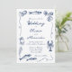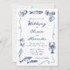 Whimsical Hand Drawn Coastal Navy Blue Wedding Invitation