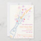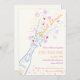 This trendy hand drawn style illustrated bridal shower invitation features a scribble champagne bottle popping flowers and confetti. The whimsical and quirky design includes handwritten font and celebration doodles. Pastel colours with dusty blue tones for a fun and modern wedding stationary collection.