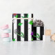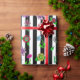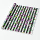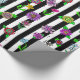 Pretty hand drawn whimsical flowers, red, purple, pink, sage green, teal and yellow floral design with black and white stripes birthday or wedding gift wrap.