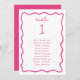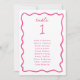 Whimsical Hand Drawn, wavy line frame, wedding seating chart card. Features, bright pink typography and frame. Fonts and element colour can be customised.
