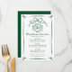 Add a festive touch to your holiday table with this hand-drawn Christmas dinner menu featuring green illustrations and lettering on a white background. A ribbon bow accents the top of the design, with a classic dinner plate and silverware illustration below. “Christmas Dinner” is displayed in an elegant handwritten script, followed by space for your personalized menu and date. The entire layout is bordered by a flowing green ribbon frame, creating a timeless and coordinated piece that complements the matching invitations in this collection.