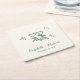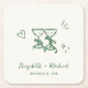 Whimsical Hand Drawn Green Cream Wedding Square Paper Coaster