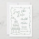 European Inspired Green and White Fun Swirling Frame Save the Date Card. This whimsical and creative save the date card, inspired by Italian, French, and European elegance, is perfect for couples who want to set a playful yet refined tone for their upcoming wedding. Designed in a classic green and white palette, the card features a swirling frame with heart details that encircle your wedding information, presented in a charming mix of script and handwritten-style fonts for a casual yet sophisticated feel.