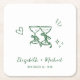 Whimsical Hand Drawn Green Wine Glasses Wedding Square Paper Coaster